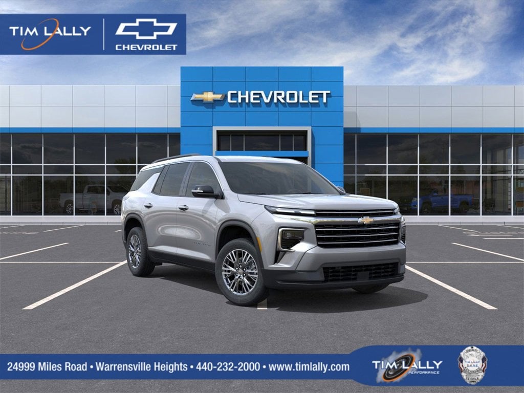 Let us show you how easy it is to shop Tim Lally Chevrolet. Need more details? Pictures? Price Quote? Video? Just ask! Since 1921 the Lally family has been delivering an outstanding customer experience to Chevrolet owners. Wait until you experience our Service Department featuring complimentary Nail Salon, Movie Theater, Kids Playroom, and more! Conveniently located just a few minutes from three major interstate routes we are easy to get to and even easier to do business with. Thank you for including us in your online vehicle search! PERFORMANCE ENTHUSIASTS: ASK US ABOUT TIM LALLY TRACK DAY EXPERIENCES! Tim Lally Chevrolet, located at 24999 Miles Rd, Warrensville Heights, OH 44128, is proud to offer this wonderful 2025 Chevrolet Traverse in Sterling Gray Metallic This vehicle is ready to take home and comes with the following features; Floor Liner Package (LPO) (1st & 2nd Row All-Weather Floor Liners (LPO) and 3rd Row All-Weather Floor Liner (LPO)), Preferred Equipment Group 2LT, AWD, 3rd row seats: split-bench, 4-Way Manual Front Passenger Seat Adjuster, 4-Wheel Disc Brakes, 6 Speakers, 6-Speaker Audio System Feature, 8-Way Power Driver Seat Adjuster, ABS brakes, Air Conditioning, Alloy wheels, AM/FM radio: SiriusXM with 360L, Apple CarPlay/Android Auto, Auto High-beam Headlights, Automatic temperature control, Brake assist, Bumpers: body-color, Child-Seat-Sensing Airbag, Compass, Delay-off headlights, Driver door bin, Driver vanity mirror, Dual front impact airbags, Dual front side impact airbags, Electronic Stability Control, Emergency communication system: OnStar, Four wheel independent suspension, Front anti-roll bar, Front Bucket Seats, Front Center Armrest, Front dual zone A/C, Front reading lights, Fully automatic headlights, Heated door mirrors, Heated front seats, Heated steering wheel, Illuminated entry, Low tire pressure warning, Navigation System, Occupant sensing airbag, Outside temperature display, Overhead airbag, Overhead console, Panic alarm, Passenger door bin, Passenger vanity mirror, Power door mirrors, Power driver seat, Power Liftgate, Power steering, Power windows, Premium Cloth Seat Trim, Radio data system, Radio: Audio System w/17.7 Diagonal Display, Rear air conditioning, Rear anti-roll bar, Rear reading lights, Rear window defroster, Rear window wiper, Remote keyless entry, Security system, SiriusXM w/360L Trial Subscription, Speed control, Speed-sensing steering, Spoiler, Steering wheel mounted audio controls, Tachometer, Telescoping steering wheel, Tilt steering wheel, Traction control, Trip computer, Turn signal indicator mirrors, Variably intermittent wipers, Voltmeter, and Wheels: 18 Grazen Metallic Machined-Face Aluminum. AWD.While we strive for 100% accuracy, errors can happen. We encourage you to verify details and availability. Rebates will differ for leasing customers. We're happy to provide the differences on the vehicle you choose. Out of state shoppers welcome. Need more information? Pictures? A walk-around video of this vehicle? Purchase or Lease quotes? Let us know! We are always happy to help.