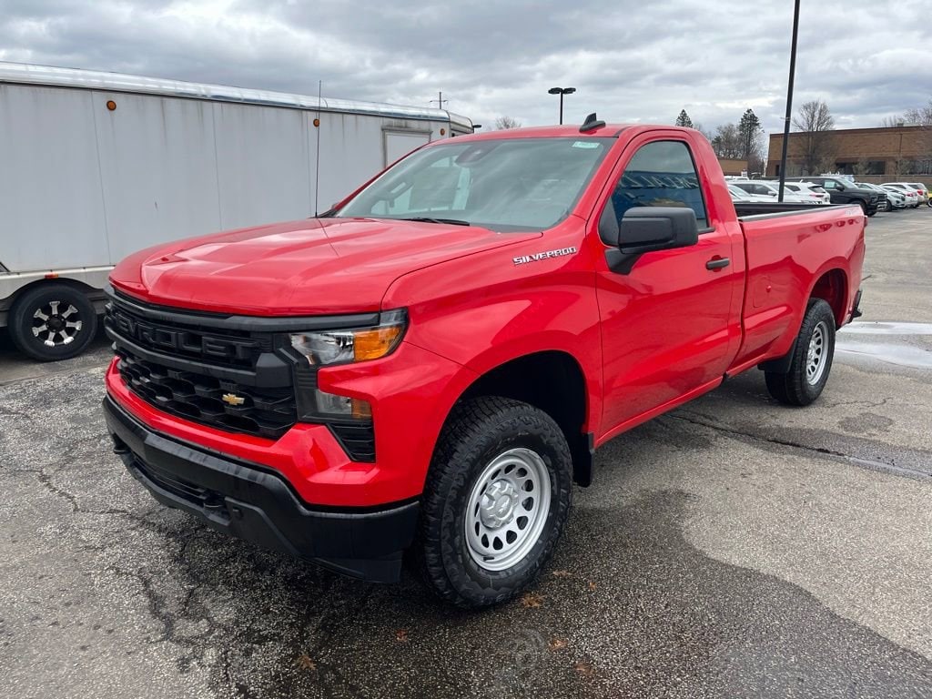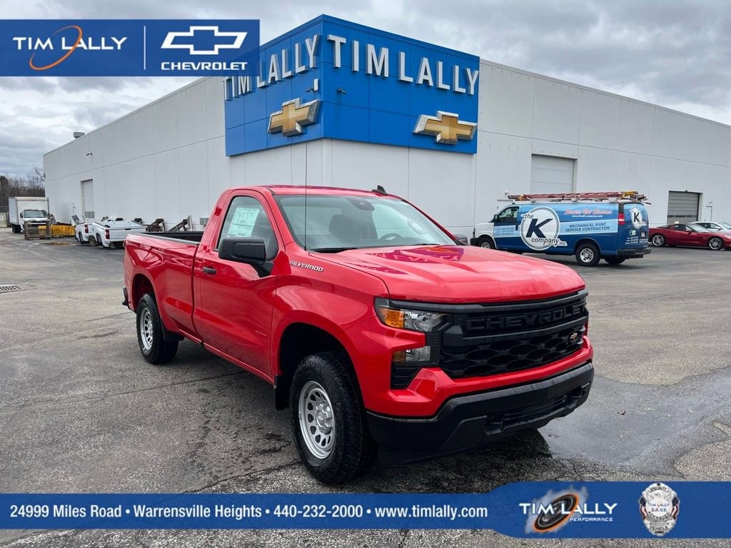 Let us show you how easy it is to shop Tim Lally Chevrolet. Need more details? Pictures? Price Quote? Video? Just ask! Since 1921 the Lally family has been delivering an outstanding customer experience to Chevrolet owners. Wait until you experience our Service Department featuring complimentary Nail Salon, Movie Theater, Kids Playroom, and more! Conveniently located just a few minutes from three major interstate routes we are easy to get to and even easier to do business with. Thank you for including us in your online vehicle search! PERFORMANCE ENTHUSIASTS: ASK US ABOUT TIM LALLY TRACK DAY EXPERIENCES! Tim Lally Chevrolet, located at 24999 Miles Rd, Warrensville Heights, OH 44128, is proud to offer this trusty 2026 Chevrolet Silverado 1500 in Red Hot This vehicle is ready to take home and comes with the following features; Preferred Equipment Group 1WT (3.5 Monochromatic Display Driver Info Center, 4-Way Manual Driver Seat Adjuster, 40/20/40 Front Split Bench Seat, Black (Semi-Gloss) Front Bumper, Black (Semi-Gloss) Rear Bumper, Bluetooth® For Phone, Electronic Cruise Control, Front Frame-Mounted Black Recovery Hooks, HD Rear Vision Camera, Heated Power-Adjustable Outside Mirrors, Inside Rearview Mirror with Tilt, Locking Tailgate, Manual Tailgate Function with No EZ Lift, Manual Tilt Wheel Steering Column, OnStar Services Capable, Power Front Windows with Driver Express Up/Down, Power Front Windows with Passenger Express Down, Remote Keyless Entry, Rubberized-Vinyl Floor Covering, SiriusXM Delete, Solar Absorbing Tinted Glass, Standard Tailgate, Teen Driver, Tire Pressure Monitoring System, Vinyl Seat Trim, Wheels: 17 x 8 Ultra Silver Painted Steel, and Wi-Fi Hot Spot Capable), Snow Plow Prep Package (220 Amp Alternator and Heavy-Duty Air Filter), Standard Suspension Package, Trailering Package (Hitch Guidance), WT Convenience Package (Deep-Tinted Glass and Electric Rear-Window Defogger), WT Value Package, 10-Speed Automatic, 4WD, Jet Black Vinyl, 2 Speakers, 2-Speaker Audio System, 4-Wheel Disc Brakes, ABS brakes, Air Conditioning, AM/FM radio, Apple CarPlay/Android Auto, Auto High-beam Headlights, Auto-Locking Rear Differential, Automatic Emergency Braking, Auxiliary External Transmission Oil Cooler, Brake assist, Compass, Delay-off headlights, Driver door bin, Dual front impact airbags, Dual front side impact airbags, Electronic Stability Control, Emergency communication system: OnStar, Engine Block Heater, External Engine Oil Cooler, Following Distance Indicator, Forward Collision Alert, Front anti-roll bar, Front Center Armrest w/Storage, Front Pedestrian Braking, Front reading lights, Front wheel independent suspension, Fully automatic headlights, Heated door mirrors, Illuminated entry, Integrated Trailer Brake Controller, IntelliBeam Automatic High Beam on/Off, Lane Keep Assist with Lane Departure Warning, Low tire pressure warning, Occupant sensing airbag, Outside temperature display, Overhead airbag, Overhead console, Panic alarm, Passenger door bin, Passenger vanity mirror, Power door mirrors, Power steering, Power windows, Premium audio system: Chevrolet Infotainment 3, Radio data system, Radio: Chevrolet Infotainment 3 System, Rear reading lights, Rear step bumper, Remote keyless entry, Speed control, Speed-sensing steering, Tachometer, Tilt steering wheel, Traction control, Trip computer, Universal Vehicle Module, Upfitter Switch Kit (5), Variably intermittent wipers, and Voltmeter. 10-Speed Automatic, 4WD, Jet Black Vinyl.