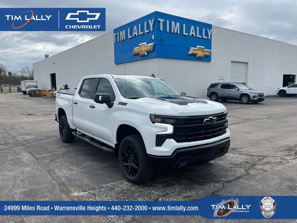 Let us show you how easy it is to shop Tim Lally Chevrolet. Need more details? Pictures? Price Quote? Video? Just ask! Since 1921 the Lally family has been delivering an outstanding customer experience to Chevrolet owners. Wait until you experience our Service Department featuring complimentary Nail Salon, Movie Theater, Kids Playroom, and more! Conveniently located just a few minutes from three major interstate routes we are easy to get to and even easier to do business with. Thank you for including us in your online vehicle search! PERFORMANCE ENTHUSIASTS: ASK US ABOUT TIM LALLY TRACK DAY EXPERIENCES! Tim Lally Chevrolet, located at 24999 Miles Rd, Warrensville Heights, OH 44128, is proud to offer this trusty 2026 Chevrolet Silverado 1500 in Summit White This vehicle is ready to take home and comes with the following features; Assist Step and Truck Bed Cover Value Package II (4 Black Round Assist Steps and Soft Folding Truck Bed Cover (LPO)), Convenience Package (10-Way Power Driver Seat with Lumbar, 120-Volt Bed Mounted Power Outlet, 120-Volt Interior Power Outlet, Dual Rear USB Ports (charge Only), Dual-Zone Automatic Climate Control, Electric Rear-Window Defogger, Heated Driver and Front Outboard Passenger Seats, Heated Steering Wheel, Keyless Open and Start, LED Cargo Area Lighting, Manual Tilt/Telescoping Steering Column, Remote Vehicle Starter System, Theft Deterrent System (unauthorized Entry), and Wrapped Steering Wheel), Convenience Package II (Hitch Guidance with Hitch View, in-Vehicle Trailering System App, Power Sliding Rear Window with Rear Defogger, Premium Bose 7-Speaker Sound System, and Universal Home Remote), Dark Appearance Package (Black Chrome Exhaust Tip, Front Frame-Mounted Black Recovery Hooks, and Single Outlet Exhaust), Leather Package (Leather-Appointed Front Seat Trim), LT Trail Boss Premium Package (Power Tailgate), Preferred Equipment Group 2LT (12.3 Multicolor Reconfigurable Digital Display, 40/20/40 Front Split-Bench Seat, 6-Speaker Audio System, All-Weather Floor Liner, Auto-Locking Rear Differential, Bluetooth® For Phone, Cloth Seat Trim, Color-Keyed Carpeting Floor Covering, Deep-Tinted Glass, Electronic Cruise Control, EZ Lift Power Lock and Release Tailgate, Front LED Fog Lamps, HD Rear Vision Camera, Heated Power-Adjustable Outside Mirrors, High Gloss Black Mirror Caps, Inside Rearview Mirror with Tilt, Integrated Trailer Brake Controller, OnStar Services Capable, Performance Red Recovery Hooks, Power Front Windows with Driver Express Up/Down, Power Front Windows with Passenger Express Down, Power Rear Windows with Express Down, Rear 60/40 Folding Bench Seat (folds Up), SiriusXM with 360L Trial Subscription, Standard Tailgate, Steering Wheel Audio Controls, Teen Driver, Tire Pressure Monitoring System, Wheels: 20 x 9 High Gloss Black Painted Aluminum, and Wi-Fi Hot Spot Capable), Protection Package (Chevytec Spray-on Black Bedliner and Rear Wheelhouse Liners), Safety Package (HD Surround Vision, Perimeter Lighting, Rear Cross Traffic Braking, Rear Pedestrian Alert, Trailer Camera Provisions, Trailer Side Blind Zone Alert, and Ultrasonic Front and Rear Park Assist), Suspension Package (Heavy-Duty Air Filter and Hill Descent Control), Trailering Package (Hitch Guidance), Up-Level Rear Seat with Storage Package, 10-Speed Automatic, 4WD, Jet Black Leather, 2 USB Data Ports, 220 Amp Alternator, 4-Wheel Disc Brakes, 6 Speakers, ABS brakes, Air Conditioning, Alloy wheels, AM/FM radio: SiriusXM with 360L, Apple CarPlay/Android Auto, Auto High-beam Headlights, Automatic Emergency Braking, Automatic temperature control, Black Tailgate CHEVROLET Lettering, Brake assist, Compass, Delay-off headlights, Driver door bin, Driver vanity mirror, Dual Exhaust with Polished Outlets, Dual front impact airbags, Dual front side impact airbags, Electronic Stability Control, Electronic Tr Price includes: $1250 - Chevrolet Consumer Cash Program. Exp. 04/30/2026 $7