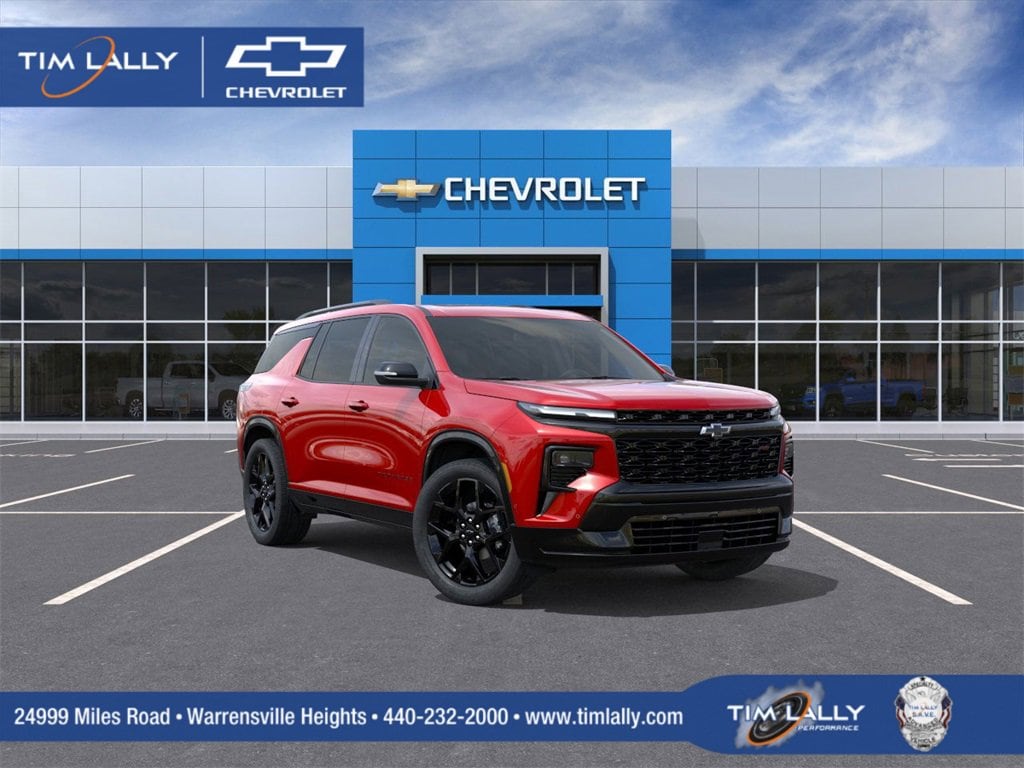 Let us show you how easy it is to shop Tim Lally Chevrolet. Need more details? Pictures? Price Quote? Video? Just ask! Since 1921 the Lally family has been delivering an outstanding customer experience to Chevrolet owners. Wait until you experience our Service Department featuring complimentary Nail Salon, Movie Theater, Kids Playroom, and more! Conveniently located just a few minutes from three major interstate routes we are easy to get to and even easier to do business with. Thank you for including us in your online vehicle search! PERFORMANCE ENTHUSIASTS: ASK US ABOUT TIM LALLY TRACK DAY EXPERIENCES! Tim Lally Chevrolet, located at 24999 Miles Rd, Warrensville Heights, OH 44128, is proud to offer this charming 2026 Chevrolet Traverse in Radiant Red Tintcoat This vehicle is ready to take home and comes with the following features; Floor Liner Package (1st and 2nd Row All-Weather Floor Liners, 3rd Row All-Weather Floor Liner, and Integrated Cargo Liner), Preferred Equipment Group 2RS, AWD, 12 Speakers, 3rd row seats: split-bench, 4-Wheel Disc Brakes, 6-Way Power Front Passenger Seat Adjuster, 8-Way Power Driver Seat Adjuster, ABS brakes, Air Conditioning, Alloy wheels, AM/FM radio: SiriusXM with 360L, Apple CarPlay/Android Auto, Auto High-beam Headlights, Auto tilt-away steering wheel, Auto-dimming door mirrors, Automatic temperature control, Bose Premium 12-Speaker Audio System Feature, Brake assist, Bumpers: body-color, Child-Seat-Sensing Airbag, Compass, Delay-off headlights, Driver 4-Way Power Lumbar Seat Adjuster, Driver door bin, Driver vanity mirror, Dual front impact airbags, Dual front side impact airbags, Electronic Stability Control, Emergency communication system: OnStar, Engine Block Heater, Exterior Parking Camera Rear, Four wheel independent suspension, Front anti-roll bar, Front Bucket Seats, Front Center Armrest, Front dual zone A/C, Front Passenger 4-Way Power Lumbar Seat Adjuster, Front reading lights, Fully automatic headlights, Garage door transmitter, Heated door mirrors, Heated Driver and Front Passenger Seats, Heated front seats, Heated rear seats, Heated steering wheel, Illuminated entry, Low tire pressure warning, Memory seat, Navigation System, Occupant sensing airbag, Outside temperature display, Overhead airbag, Overhead console, Panic alarm, Passenger door bin, Passenger vanity mirror, Perforated Leather-Appointed Seat Trim, Power door mirrors, Power driver seat, Power Dual Glass Panoramic Sliding Sunroof, Power Liftgate, Power passenger seat, Power steering, Power windows, Radio data system, Radio: : Audio System w/17.7 Diagonal Display, Rain sensing wipers, Rear air conditioning, Rear anti-roll bar, Rear reading lights, Rear window defroster, Rear window wiper, Remote keyless entry, Security system, SiriusXM with 360L Trial Subscription, Speed control, Speed-sensing steering, Spoiler, Sport steering wheel, Steering wheel memory, Steering wheel mounted audio controls, Tachometer, Telescoping steering wheel, Tilt steering wheel, Traction control, Trip computer, Turn signal indicator mirrors, Variably intermittent wipers, Ventilated Driver and Front Passenger Seats, Ventilated front seats, Voltmeter, and Wheels: 22 High Gloss Black Painted Aluminum. AWD.