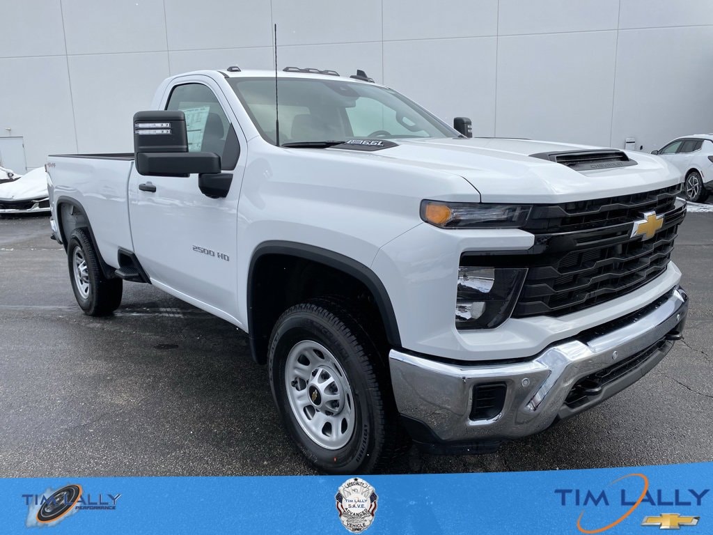 Odometer is 12031 miles below market average! 10-Speed Automatic, 4WD, Black Cloth.Let us show you how easy it is to shop Tim Lally Chevrolet. Need more details? Pictures? Price Quote? Video? Just ask! Since 1921 the Lally family has been delivering an outstanding customer experience. Conveniently located just a few minutes from three major interstate routes we are easy to get to and even easier to do business with. Thank you for including us in your online vehicle search! PERFORMANCE ENTHUSIASTS: ASK US ABOUT TIM LALLY TRACK DAY EXPERIENCES!Summit White 2025 Chevrolet Silverado 2500HD Work Truck 4WD 10-Speed Automatic 6.6L V8While we strive for 100% accuracy, errors can happen. We encourage you to verify details and availability. Out of state shoppers welcome. Need more information? Pictures? A walk-around video of this vehicle? Let us know! We are always happy to help.